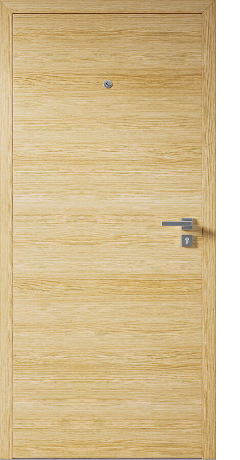 Vstupní dveře jsou k dispozici v jednokřídlém i dvoukřídlém provedení, a to jak ve falcové, tak i bezfalcové variantě. Lze je vyrobit také v kouřotěsném provedení a volitelně doplnit o protihlukovou úpravu. Dveře nabízíme v odolných povrchových úpravách.